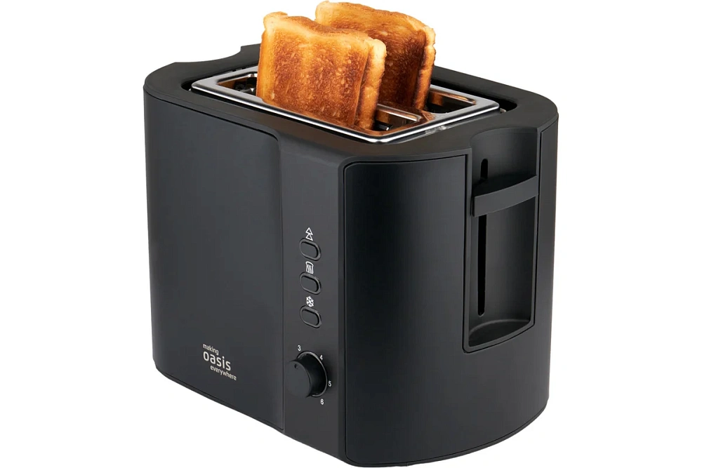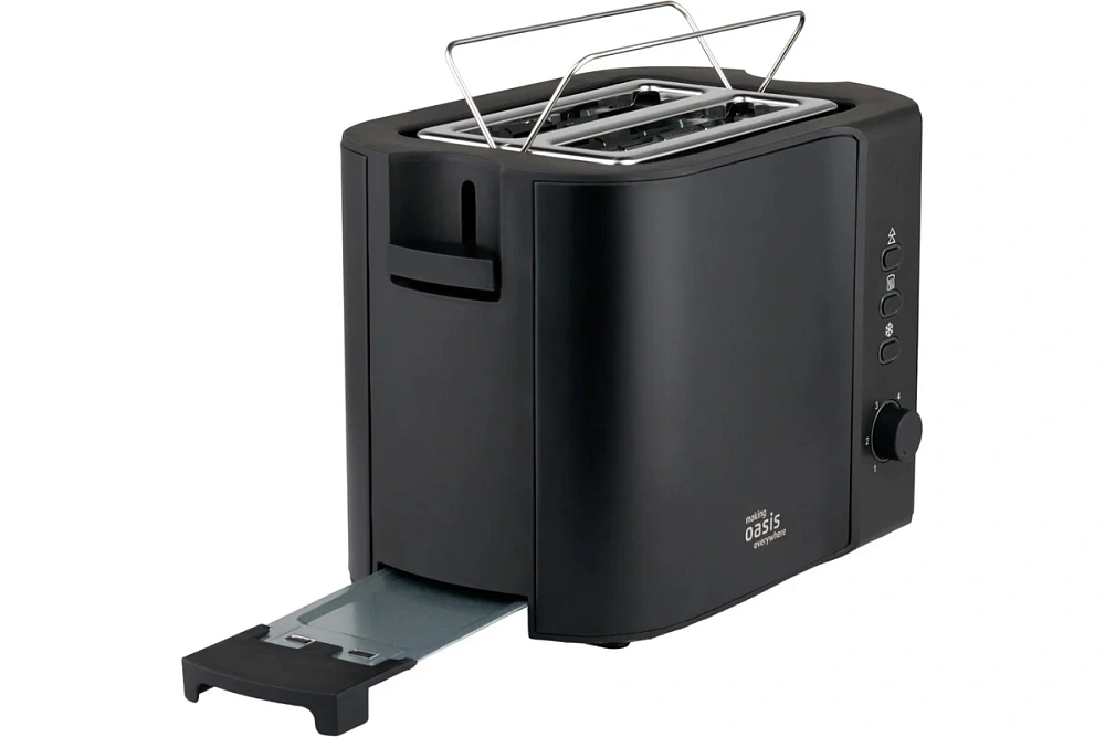 Тостер making Oasis everywhere сочетает в себе множество полезных функций. Благодаря нескольким уровням обжарки, можно приготовить тост на любой вкус и из любых видов хлеба. Подрумянить хлеб прямо из морозилки просто, благодаря функции размораживания. Если тосты уже остыли, функция разогрева делает их снова горячими. Специальная стойка позволяет легко подогреть то, что нельзя разместить внутри устройства, например булочки или круассаны. Нажатие кнопки «Отмена» прекращает работу устройства.
