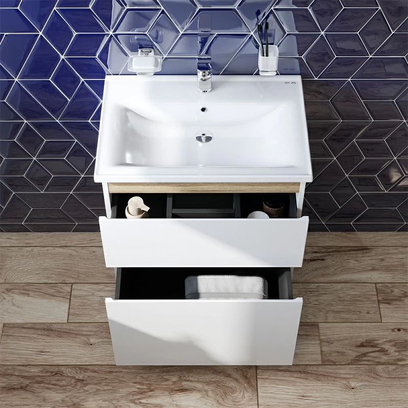 Тумба напольная M85AFSX0652WG X-Joy 65 2 ящ Белый лянец AMPM