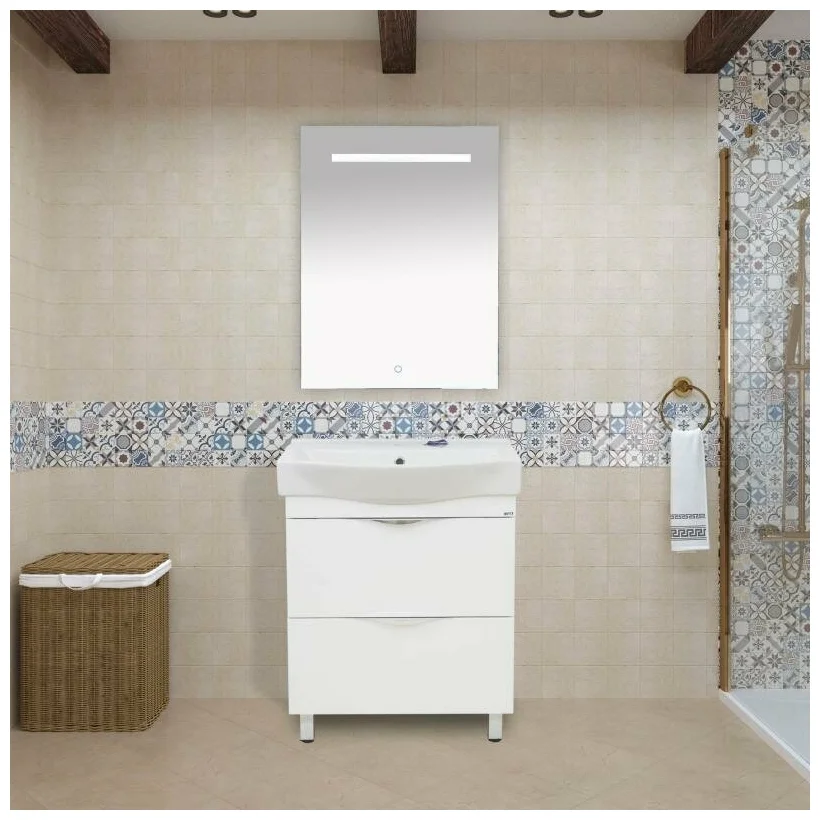 Тумба Орион 65 напольная белая с 2 ящ ум. Беверли 65 Misty