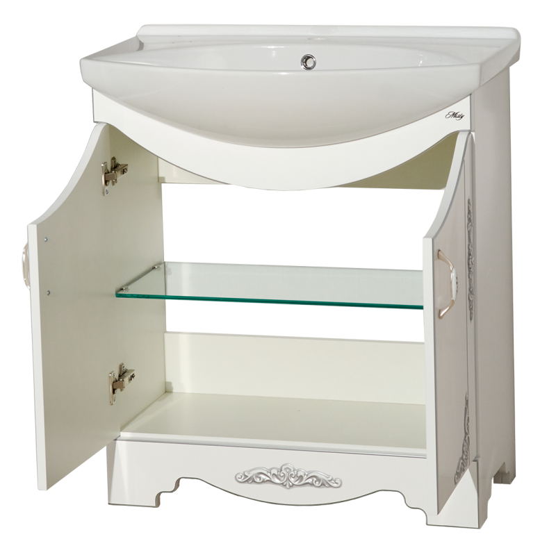 Тумба Рига 75 прямая белая с серебром ум. Дрея Лагуна 75 Misty