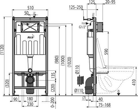Инсталляция Alcadrain AM101/1120-4:1 RU кнопкой M671 хром глянец + M91 2 места Alca Plast