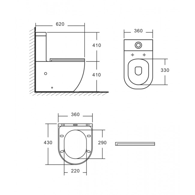 Унитаз-компакт А2809 безободковый, сид. тонкое ДП, уд. патр., крепл., армат., гориз. выпуск Eva Gold