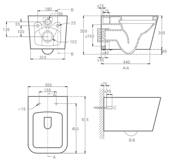 | Тип унитаза | Унитазы подвесные |