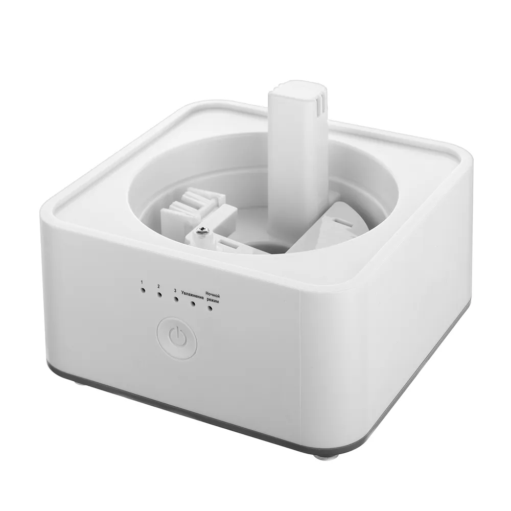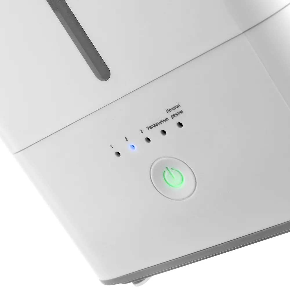 Объема резервуара воды 4 л хватит на 8 часов работы в максимальном режиме. Увлажнитель оснащён гигростатом, т.е. осуществляет контроль за уровнем влажности воздуха. Устройство автоматически отключается, когда этот показатель достигает нужного параметра. Чтобы LED-подсветка не мешала сну, увлажнитель оснащён функцией «Ночной режим».