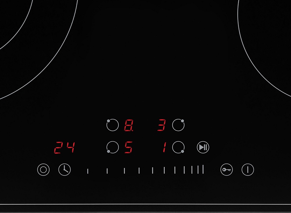 Мощность изменяется по 9 ступеням. А для наибольшей эффективности левая ближняя конфорка имеет расширяющуюся зону нагрева. С ней можно использовать посуду большого диаметра. Таймер автоматически отключит плиту по истечении времени. Всего можно задать значение от 1 до 99 мин. Не необходимость поставить готовку на паузу, нужно активировать Stop&Go.