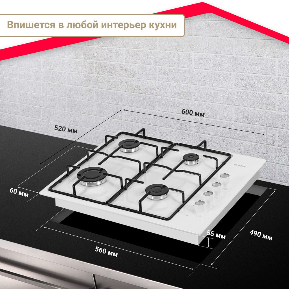 Варочная поверхность газовая Simfer H60Q40W411