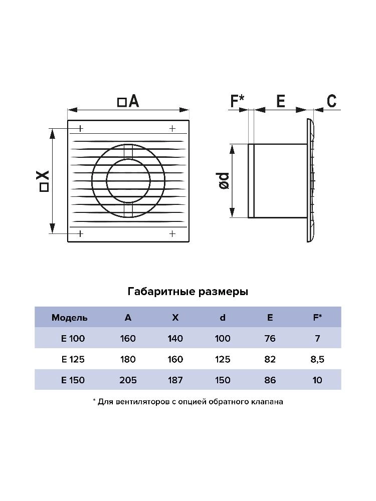 Вентилятор накладной сетка обратный клапан E D150 ERA E 150 S C