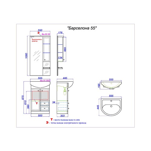Панель с зеркалом-шкафчиком и подсветкой Барселона Ba.02.55 Aqwella