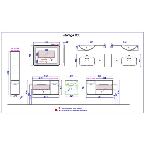 Зеркало Malaga Л9 с подсветкой Mal.02.09 Aqwella