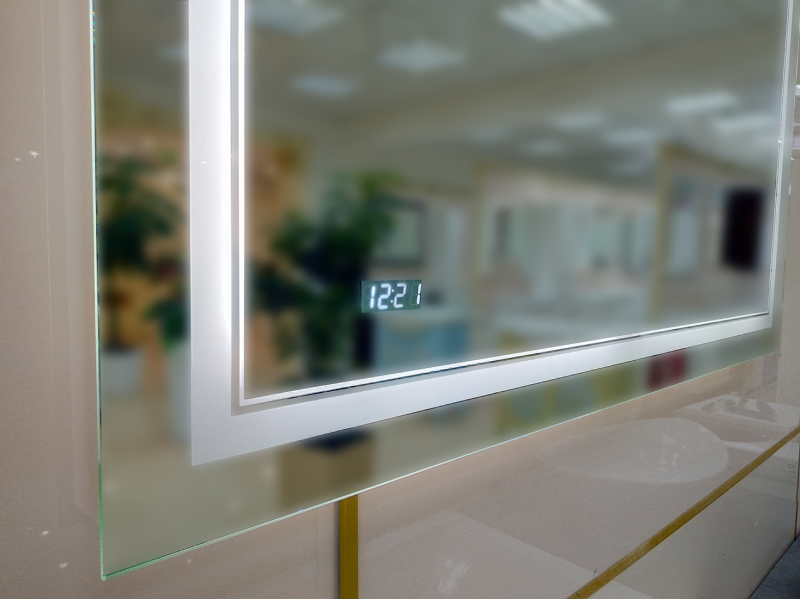 Зеркало НЕОН 2 LED 100*80 сенсор на зеркале+часы (двойная подсветка) Misty